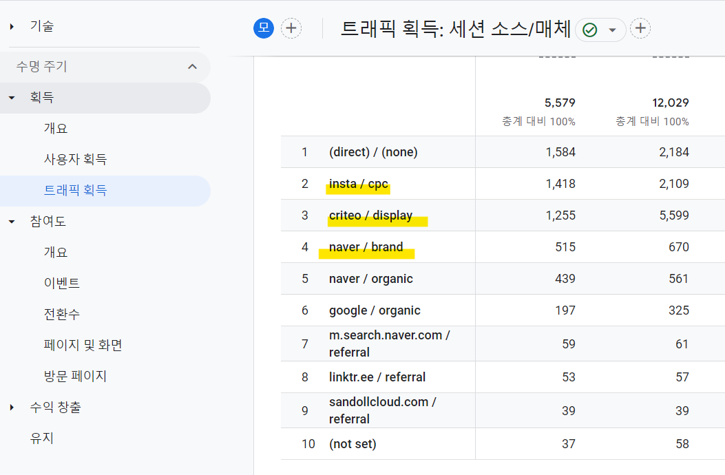 애널리틱스 > 매체/소스 부분에서 확인이 가능하게 되겠죠!
