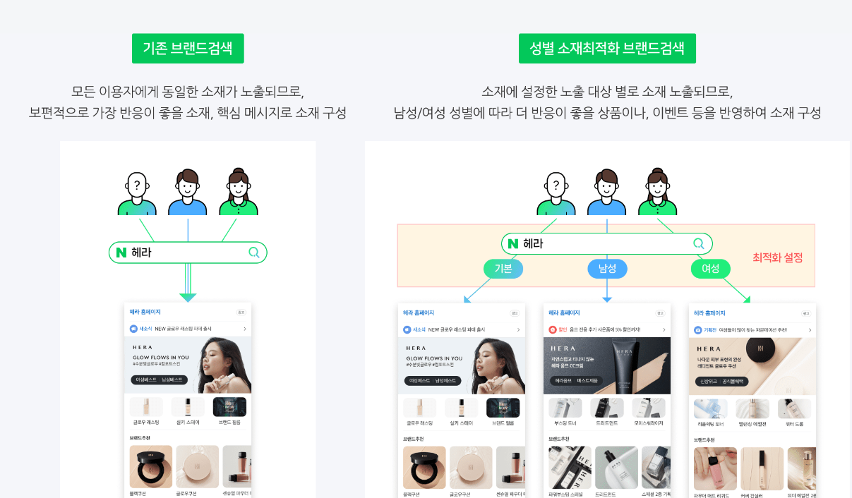 다양한 템플릿별 특징은 그대로 활용하면서, 검색 이용자 성별에 적합한 소재 제공을 통해