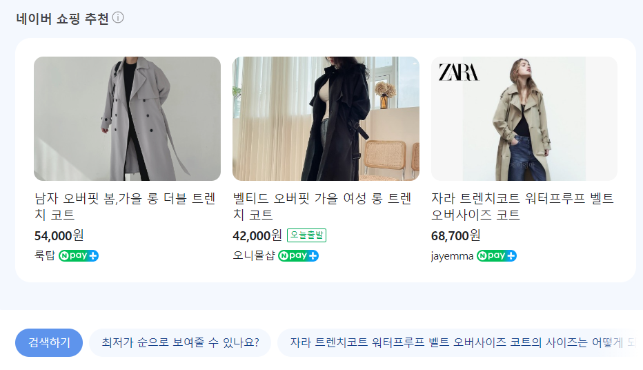 네이버 쇼핑 등, 연관되어있는 제품의