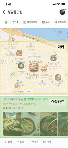 - 마커: 지도 영역에 노출되는 업체 아이콘